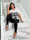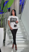Corset print t-short with lace up ribbon detail on sides. Long length.