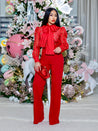Model wearing size Small. This blouse is sheer. I’m wearing a nude seamless tank underneath.